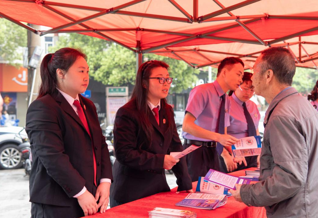 图为吉安县人民法院法官向群众普及国家安全知识。