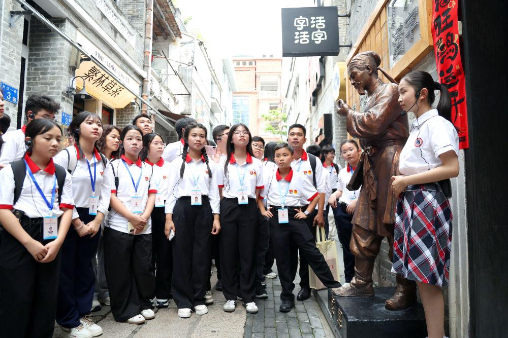 4月11日,越南青少年在广州永庆坊了解活字印刷相关知识。
