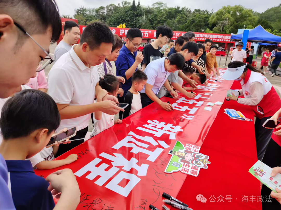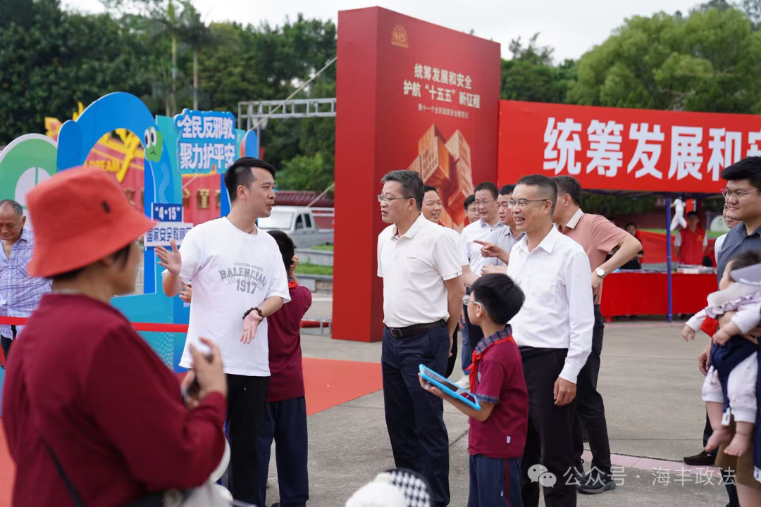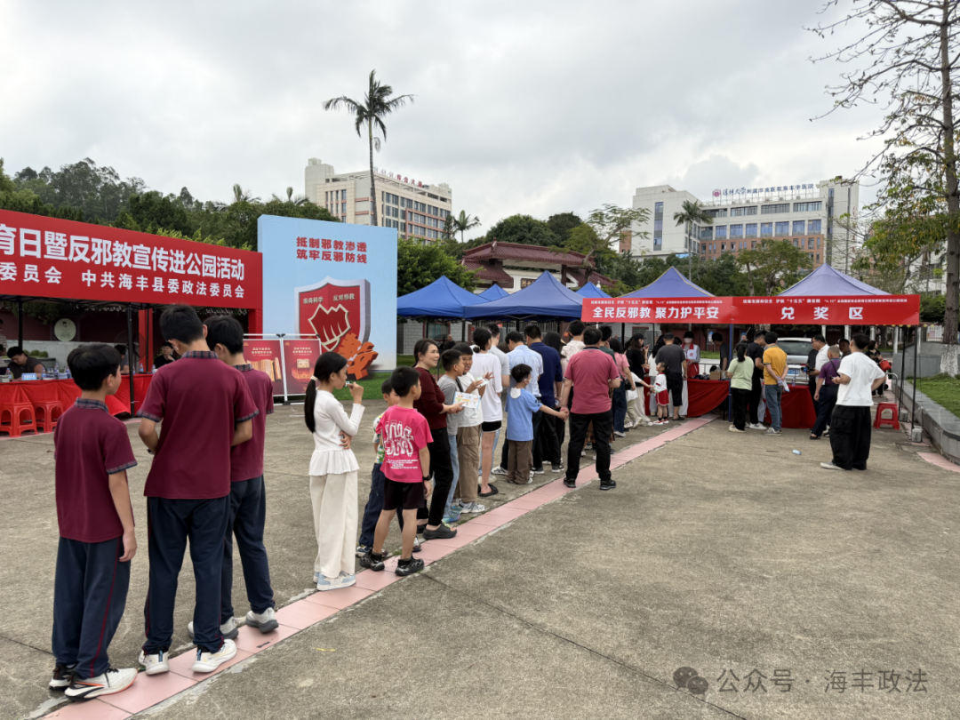 4月11日,由中共汕尾市委政法委、中共海丰县委政法委主办,中共海丰县委办公室(国安办)、中共海丰县委统战部(民宗局)、中共海丰县委社工部(信访局)、海丰县人民法院、海丰县人民检察院、海丰县公安局、海丰县司法局、共青团海丰县委、海丰县妇联、海城镇城北社区、德成中英文学校等相关单位协办的“4·15”全民国家安全教育日暨反邪教宣传进公园活动在海丰县烈士陵园广场举行。汕尾市委政法委副书记庄俊超,海丰县委常委、政法委书记许泽武等参加活动。