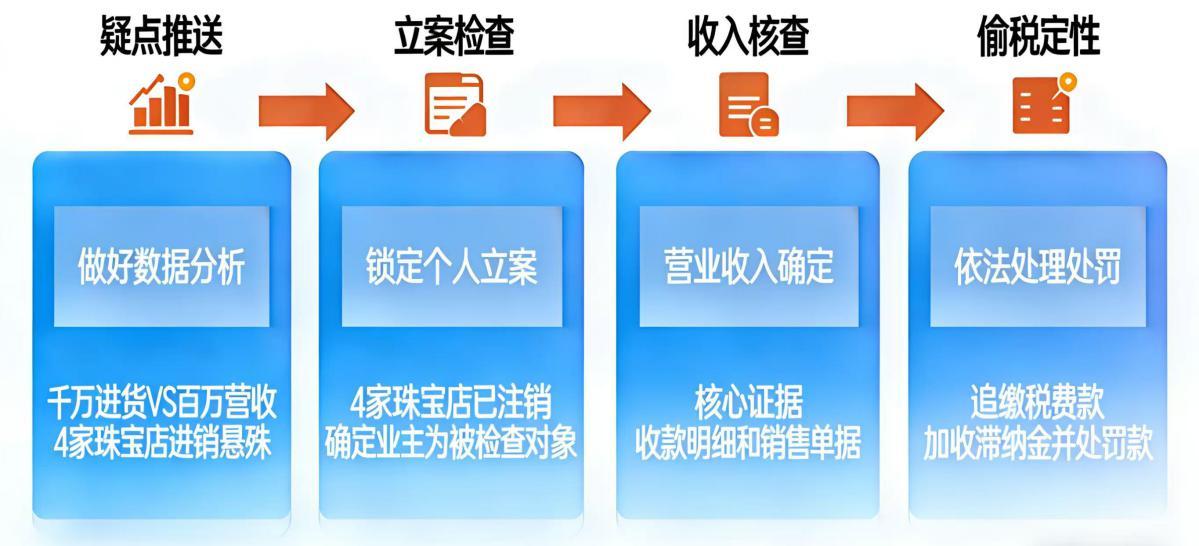 2025年3月,黄山市税务局第一稽查局接到上级部门推送的风险线索,反映歙县中金珠宝店消费税应税首饰的进项金额远大于销项金额,存在隐匿收入少缴税费嫌疑。