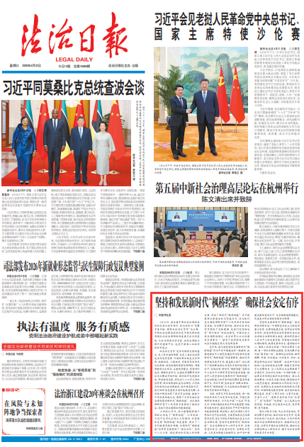 近年来,我们把坚持和发展新时代“枫桥经验”作为平安中国建设的一面旗帜,把推进综治中心规范化建设作为坚持和发展新时代“枫桥经验”的重要载体,推动应用场景遍及城市乡村、覆盖线上线下,极大提升了就地解决群众诉求和矛盾纠纷的能力水平。实践证明,新时代“枫桥经验”是综治中心运行中必须牢牢坚持的基本经验;综治中心是坚持和发展新时代“枫桥经验”、在法治轨道上把矛盾纠纷化解在基层的重要平台。作为中国“良政善治”的鲜活样本,新时代“枫桥经验”正日益彰显出跨越时空的时代价值和世界意义。