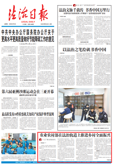 ——面向农民群众,依托农家书屋、法治长廊等阵地和农业综合执法人员、农村土地承包纠纷调解仲裁员、“法律明白人”、村居法律顾问等队伍,常态化开展土地承包、农资安全、农产品质量安全等重点领域普法,让农民群众在生产经营中学法用法,在遇到问题时首先想到依靠法律。