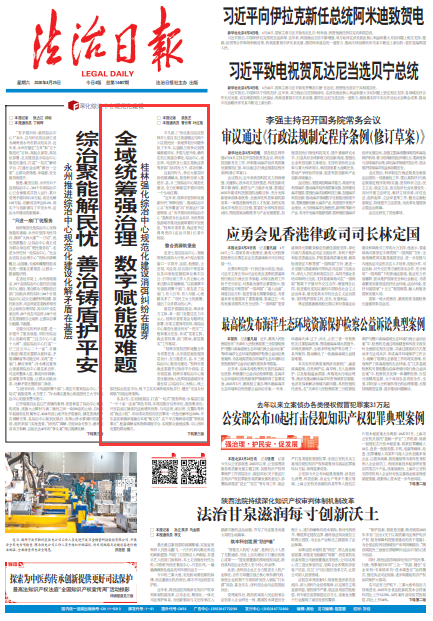 “近年来,桂林市坚持和发展新时代‘枫桥经验’,推动综治中心从‘有形覆盖’向‘有效运行’深度转型,让‘有矛盾纠纷到综治中心’逐渐成为社会共识,为世界级旅游城市建设绘就厚重的平安底色。”桂林市委常委、政法委书记蒋育亮向《法治日报》记者介绍说。