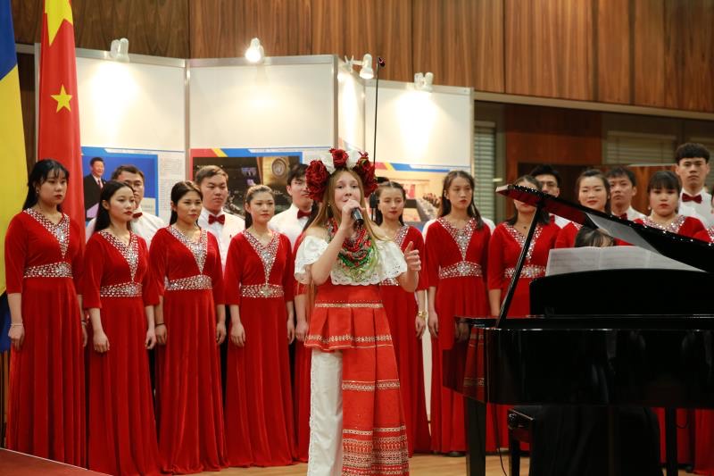 招待会在中国留学生艺术团合唱队用中乌双语演唱的两国国歌声中拉开帷幕,现场观众对此报以热烈掌声,从一开始就把招待会气氛推向了高潮。