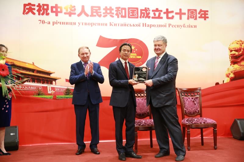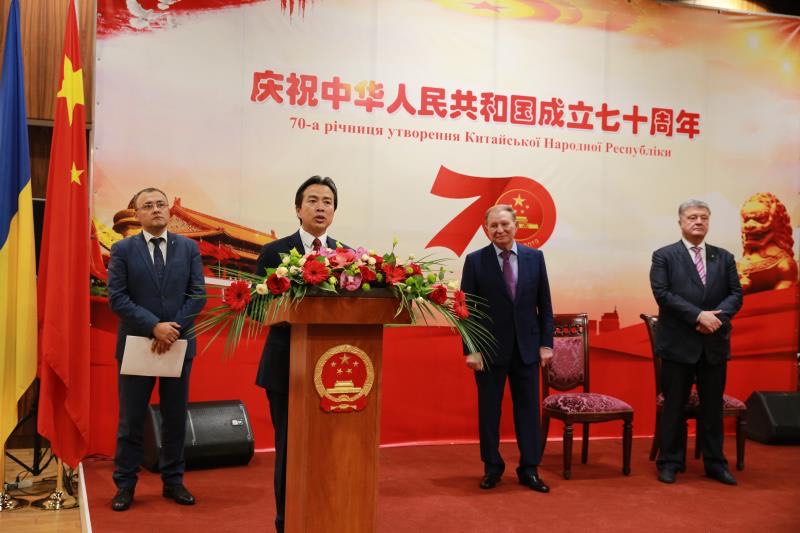 9月24日,中国驻乌克兰大使馆在基辅国际会展中心举行国庆招待会,热烈庆祝中华人民共和国成立70周年华诞。乌克兰前总统库奇马、波罗申科、副外长博德纳尔、博若克、国安委副秘书达尼洛夫、基础设施部部长克雷克里、乌议会、政党、军队代表及乌社会各界友人、外国驻乌使节、中国驻乌新闻机构、中资企业、华侨华人、留学生代表等近900人出席招待会。