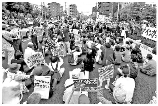 鉴于日本国内频发针对非日本出身者的仇恨言行事件,2016年日本国会通过《仇恨言论对策法》,禁止实施相关行为。法律把“仇恨言行”定义为“以助长歧视观念为目的、公然告知将危害对方生命、身体、自由和财产及具有明显的侮辱他人的意图,并有意煽动将日本以外的国家和地区出身者排除在地区社会之外”的行为。但遗憾的是,该法主要以开展针对禁止仇恨言行的启发、教育活动及完善受害者咨询体制为主,没有写入罚则。