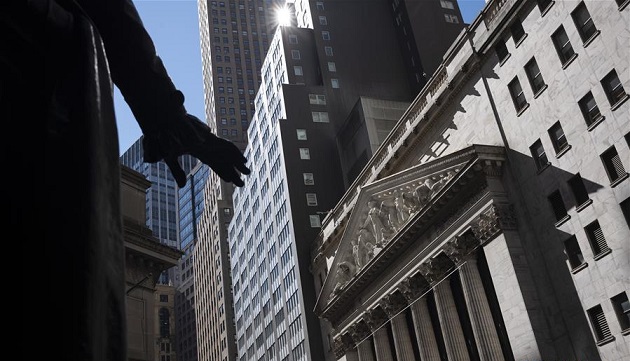 这是3月9日拍摄的美国纽约证券交易所大楼(右)。新华社记者李木子摄