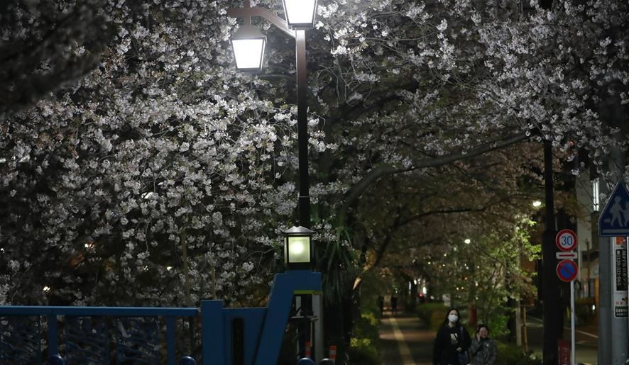 4月6日,在日本东京,行人戴口罩从樱花树下经过。 日本首相安倍晋三7日为应对新冠肺炎疫情发布紧急事态宣言,宣布东京、大阪、埼玉、千叶、神奈川、兵库和福冈7个都道府县进入紧急状态,有效期限至5月6日。 新华社记者 杜潇逸 摄