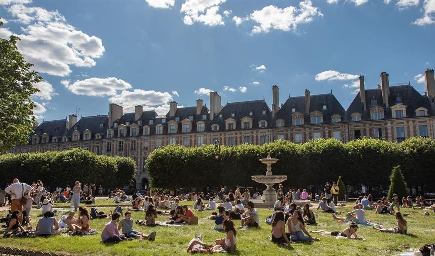 5月31日,人们在法国巴黎孚日广场的绿地上享受阳光。 法国政府网站5月31日公布的数据显示,法国新增新冠确诊病例257例,累计确诊151753例。法国全国的公园、绿地自周末起重新开放。 新华社发(奥雷利安·莫里萨尔摄)