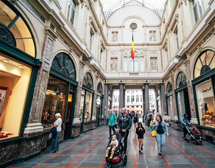 6月28日,游客在比利时布鲁塞尔圣于贝尔长廊游览。 近日,随着欧盟国家间逐步开放边境,比利时布鲁塞尔游客逐渐增多。 新华社记者 张铖 摄
