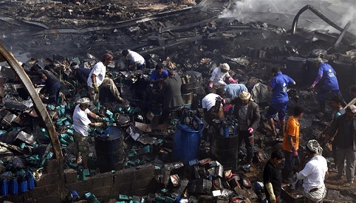 7月2月,人们在也门首都萨那一处遭空袭的仓库废墟上清理物品。 据马西拉电视台1日报道,也门首都萨那当天多次遭战机空袭,胡塞武装称多国联军实施了空袭。 新华社发(穆罕默德摄)