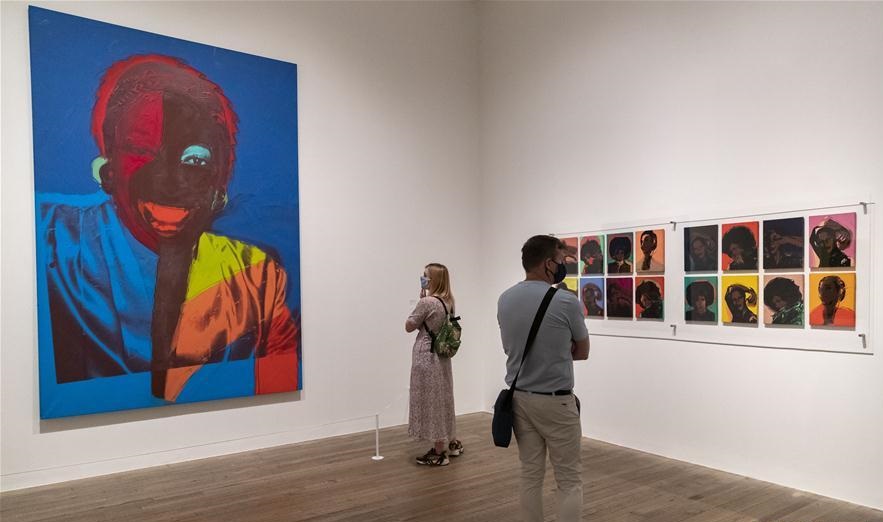 8月1日,观众在英国伦敦的泰特现代美术馆观看安迪·沃霍尔的作品。 受疫情影响关闭数月的泰特现代美术馆于7月27日正式对公众开放。其中,安迪·沃霍尔作品展将延长展出时间至11月15日。参观者需提前网上预约参观时段,并全程佩戴口罩且保持安全距离。 新华社记者 韩岩 摄