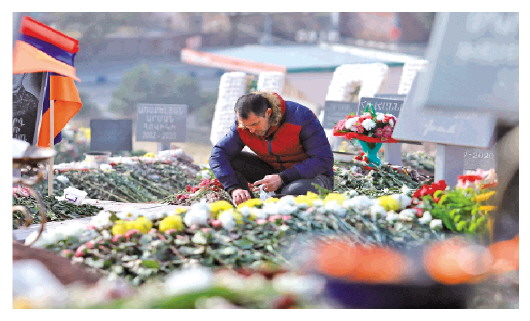 图②为纳卡地区宣布停火后,亚美尼亚当地民众安葬阵亡士兵。 新华社发 格扎拉扬 摄