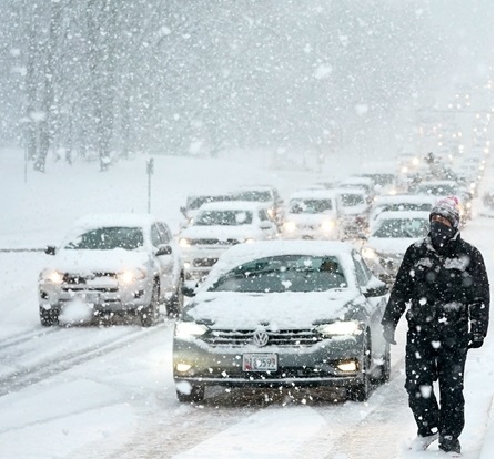 美国多地降雪 导致交通堵塞