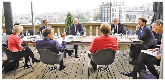 欧盟今年2月启动《数字服务法案》和《数字市场法案》立法工作。欧盟领导人就此进行了数轮磋商。12月15日,欧盟委员会公布了《数字服务法案》及《数字市场法案》草案。图①为欧盟委员会领导人及法、德等欧洲主要国家领导人在布鲁塞尔进行磋商。图②为欧盟委员会主席冯德莱恩。