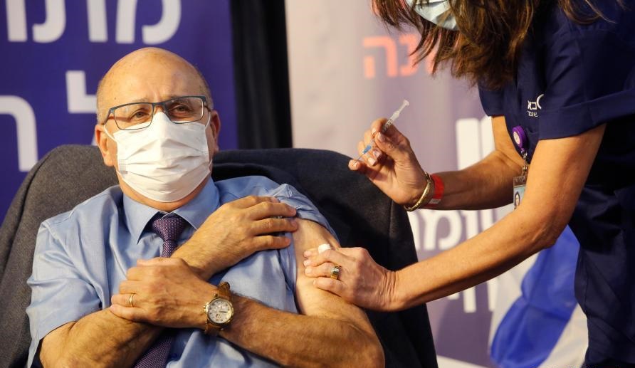 12月19日,在以色列拉马特甘的谢巴医疗中心,一名医务人员接种新冠疫苗。