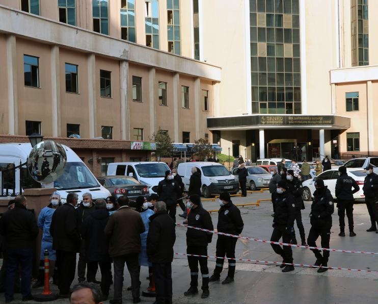 12月19日,在土耳其东南部加济安泰普省,警察在发生火灾的私立医院外警戒。