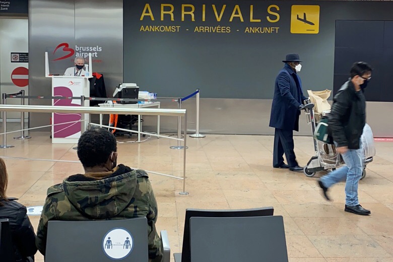 12月21日,旅客在比利时布鲁塞尔机场到达厅行走。