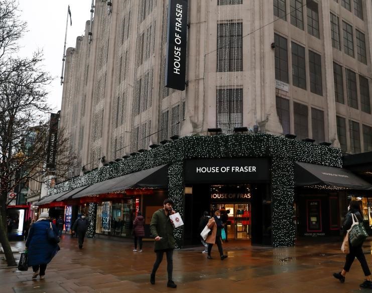 12月18日,人们从英国伦敦的弗雷泽百货公司前走过。