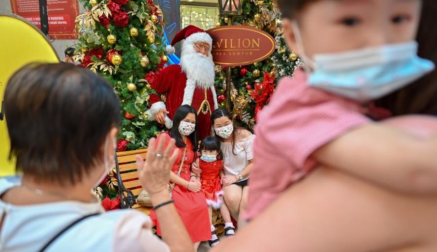 12月24日,在马来西亚吉隆坡,人们戴着口罩逛商场。