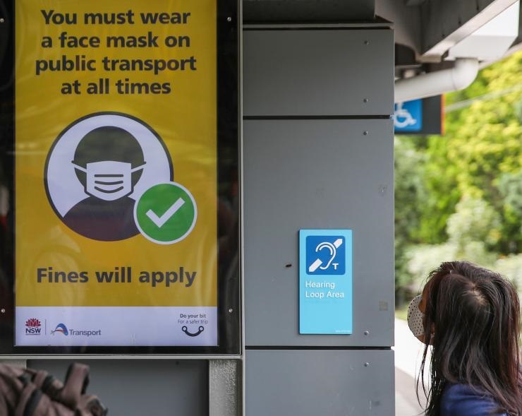 1月4日,在澳大利亚悉尼一座火车站,市民戴口罩观看乘车防疫规定。新华社记者 白雪飞 摄