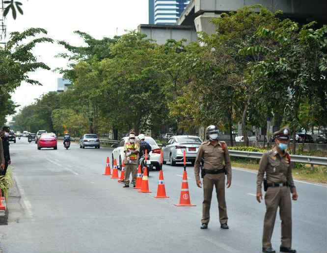 1月5日,警察在泰国曼谷的一处防疫检查站工作。