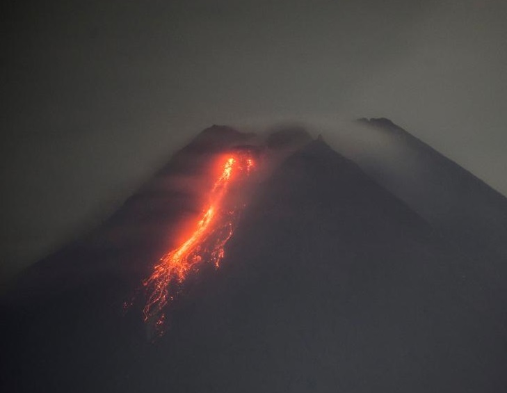 这是1月19日在印度尼西亚日惹拍摄的喷发的默拉皮火山。新华社发(苏普里扬托摄)
