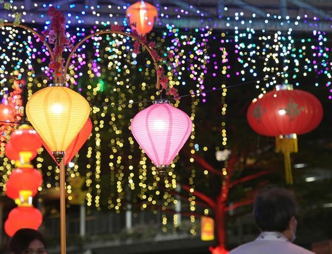 1月18日,庆祝农历新年的灯饰在新加坡红山组屋区亮起。 新华社发 (邓智炜 摄)
