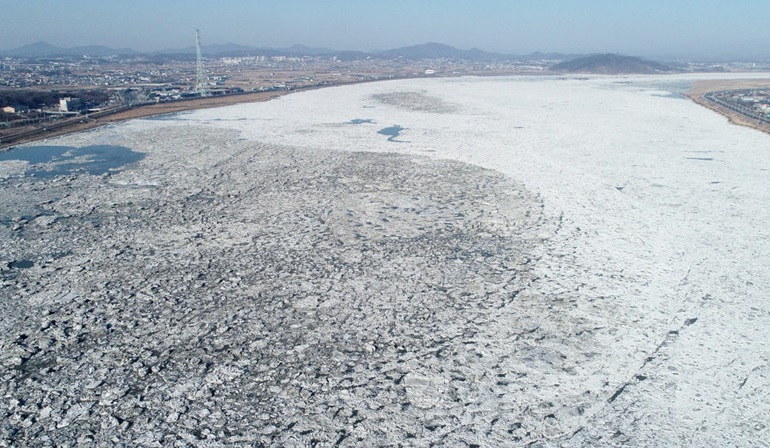 低温造就冰封 韩国汉江结冰--国际--人民网