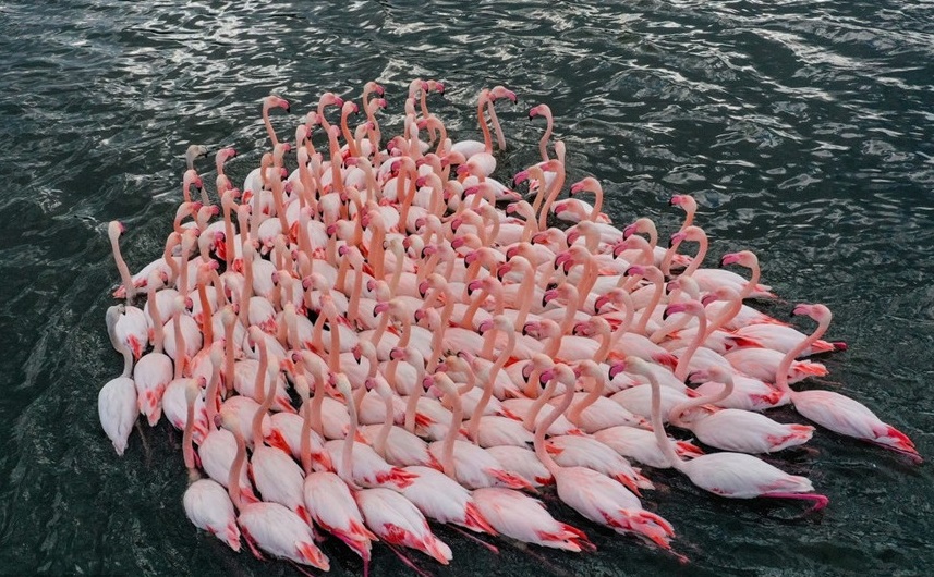 人民网讯 当地时间1月18日,土耳其伊兹密尔,成群结队的火烈鸟在水中畅游。
