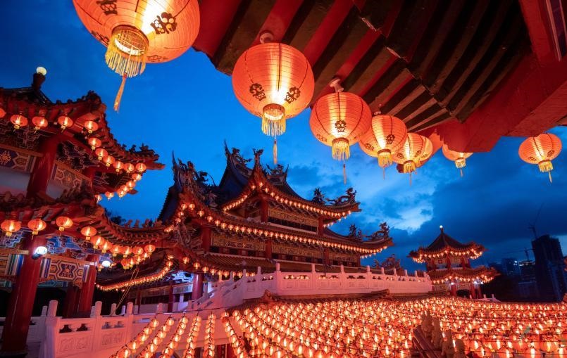 这是2月2日在马来西亚吉隆坡天后宫拍摄的红灯笼。