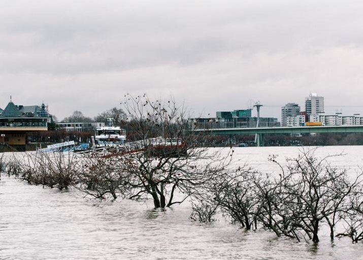 这是2月2日在德国科隆拍摄的水位上涨的莱茵河。新华社发(唐颖 摄)