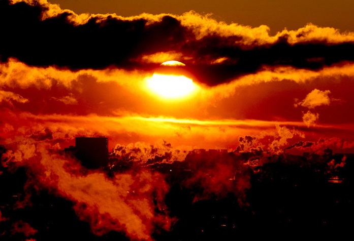 莫斯科日出美景 浓烟缭绕宛如仙境