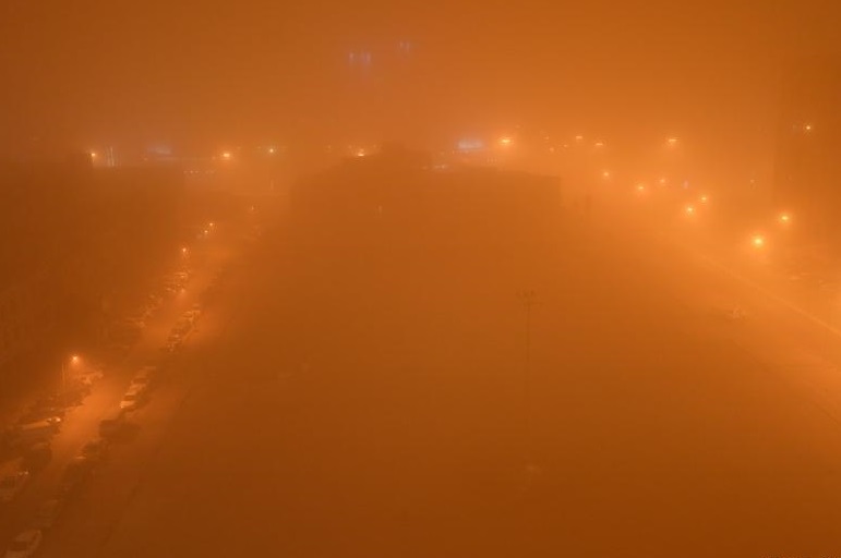 当日,科威特城遭遇沙尘暴天气。新华社发(阿萨德摄)