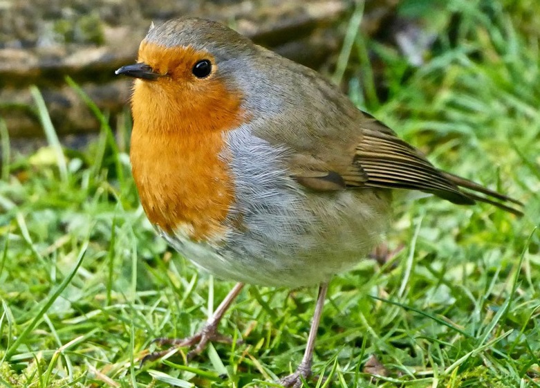 春日来临万物复苏 英国国鸟知更鸟林中觅食