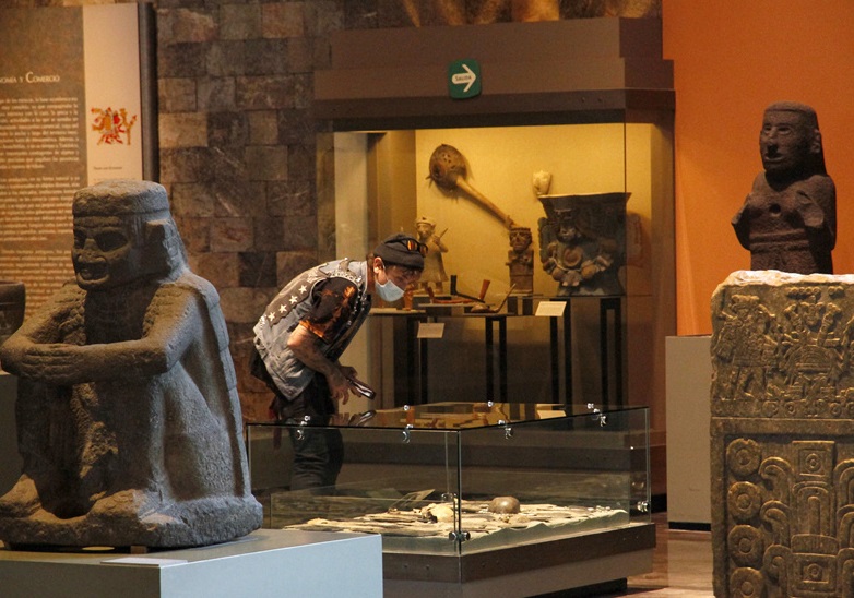 人民网讯 当地时间2021年3月11日,墨西哥墨西哥城,墨西哥国立人类学博物馆重新开放,游客戴口罩参观游览。
