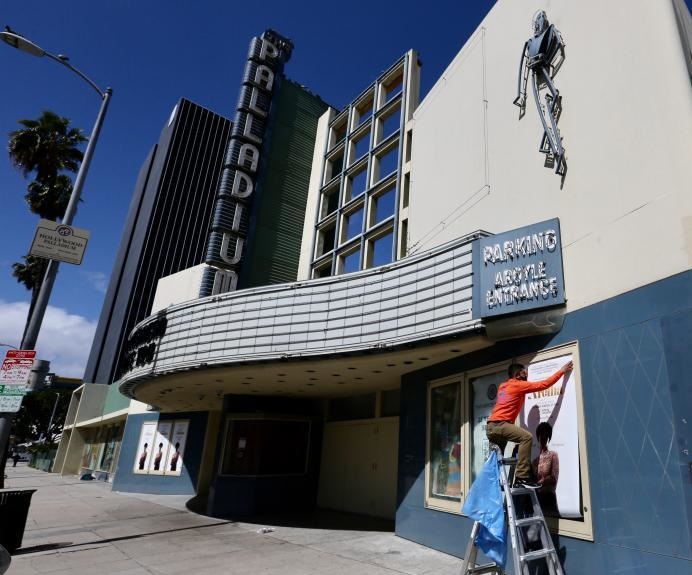 3月15日,美国加利福尼亚州洛杉矶一家影院的员工为重新营业做准备。