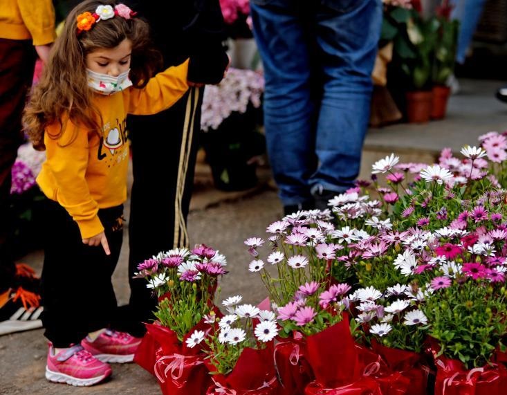 3月20日,在黎巴嫩首都贝鲁特,人们在花店购买鲜花。