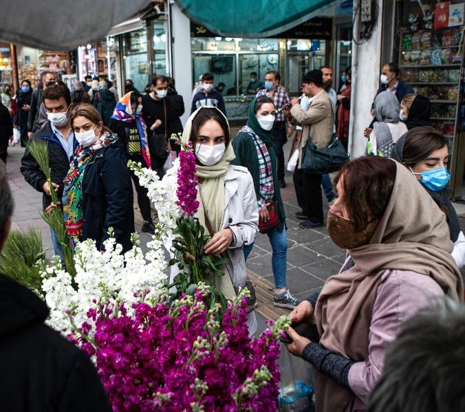 3月18日,人们在伊朗德黑兰一处市场内购买鲜花。