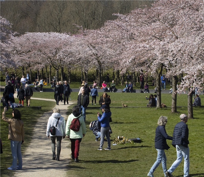 人民网讯 当地时间3月29日,荷兰阿姆斯特丹郊外的阿莫斯特尔芬,荷兰樱花绽放,人们外出踏春。
