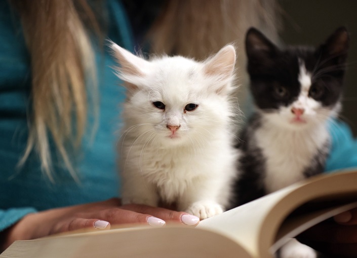 当地时间3月30日,土耳其布尔萨,当地一家图书馆里随处可见猫咪出没,读者可以一边阅读书籍,一边撸猫。(图片来源:东方IC)