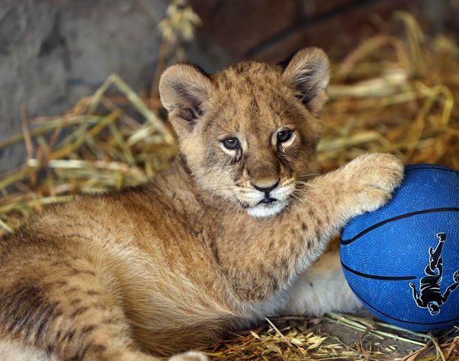 当地时间4月1日,土耳其伊斯坦布尔,动物园里的两只新生狮子宝宝亮相。(图片来源:东方IC)