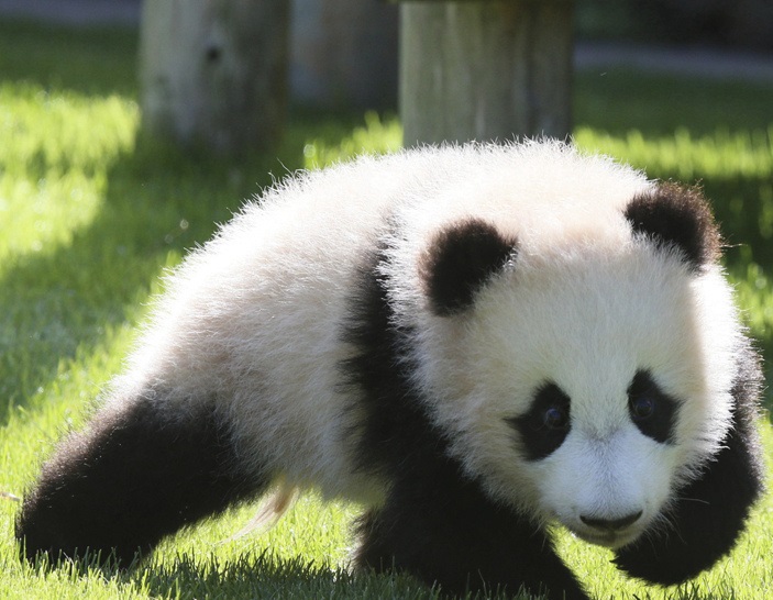 当地时间4月7日,日本和歌山县白滨町娱乐设施“冒险世界”,大熊猫宝宝“枫浜”正在晒日光浴。(图片来源:东方IC)
