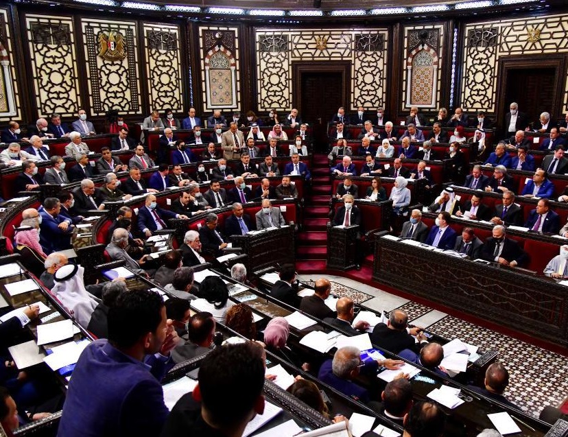 这是4月18日在叙利亚大马士革拍摄的议会会议现场。