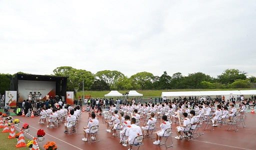 5月11日至12日,东京奥运火炬接力相关活动在日本福冈县举行。由于受新冠肺炎疫情影响,福冈县境内的火炬传递取消了火炬手路上跑动传递,改为举行点火仪式,由火炬手轮流在仪式的舞台上交接圣火,不允许普通观众入场观看。