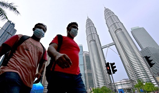 5月19日,在马来西亚吉隆坡,行人戴着口罩走在路上。新华社发(张纹综摄)