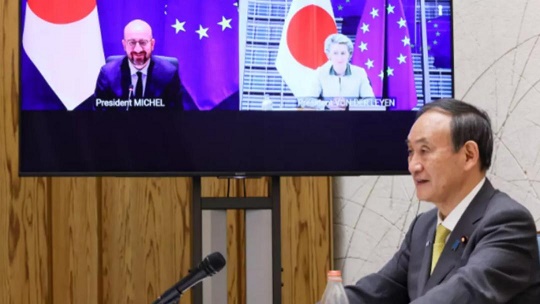 第27届欧盟-日本峰会27日以线上方式举行,欧洲理事会主席米歇尔、欧盟委员会主席冯德莱恩和日本首相菅义伟与会。会后发表的联合声明说,双方支持今年夏天以“安全和有保障的方式”举办东京奥运会和残奥会,这是“全球团结打败新冠疫情”的一个象征。