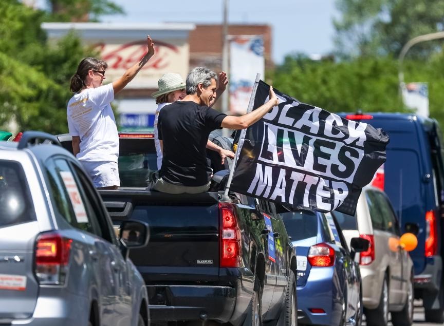 6月19日,民众在美国伊利诺伊州埃文斯顿参加六月节庆祝活动。新华社发(乔尔·莱纳摄)