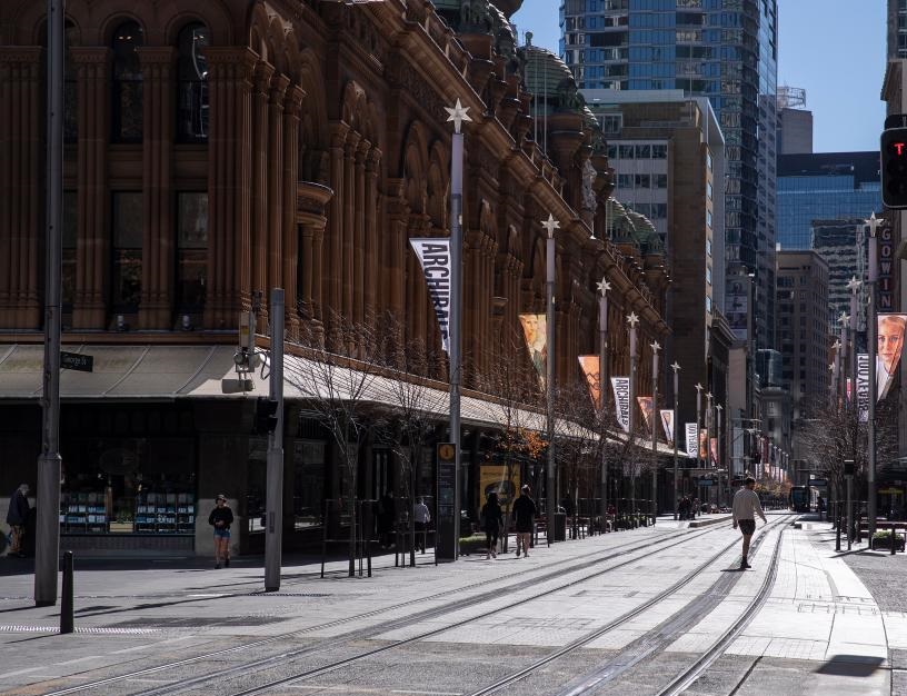 这是6月26日拍摄的澳大利亚悉尼市中心空旷的街道。