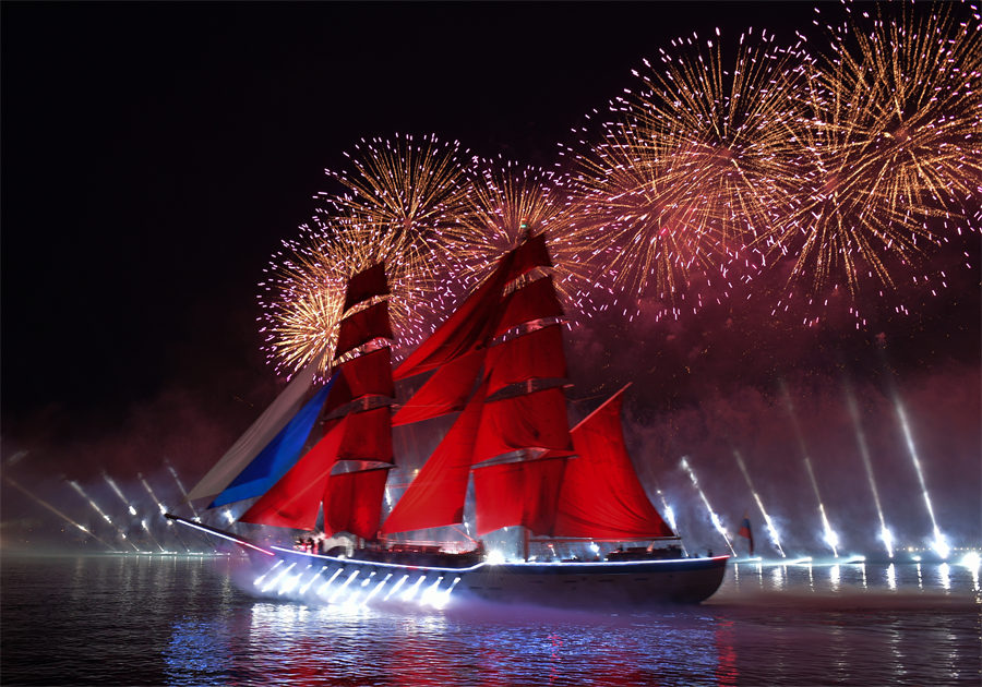 人民网讯 当地时间6月26日,俄罗斯圣彼得堡举行红帆节庆祝学生毕业。